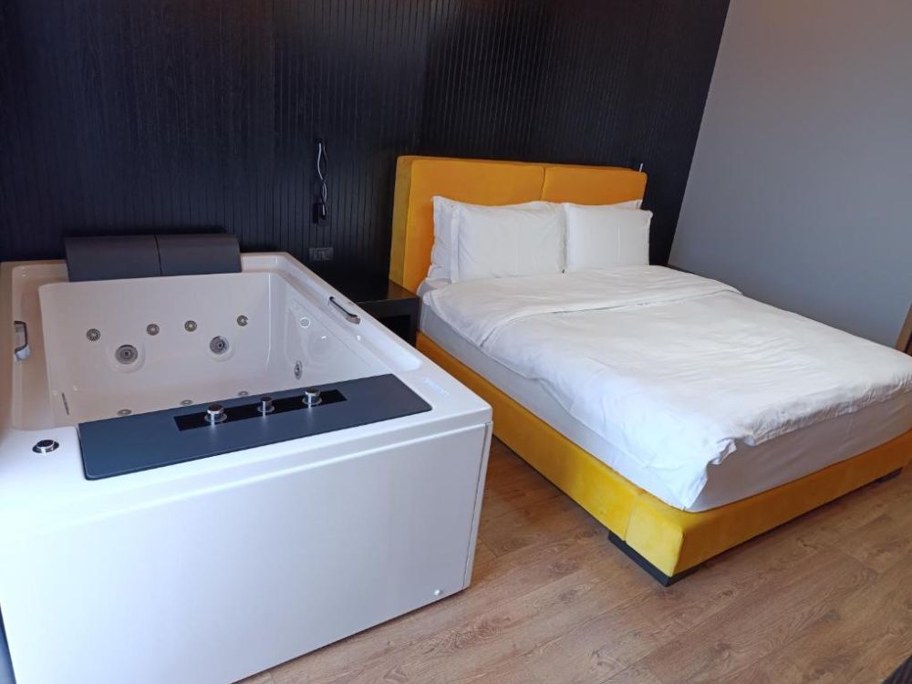 Unwind in style in our Double Room with Jacuzzi, offering a spacious 30 m² of modern comfort. This room features a plush double bed, rated 9.1 for comfort based on 85 guest reviews, promising a restful sleep. Enjoy the added luxury of a private jacuzzi, perfect for relaxing after a long day, complemented by complimentary WiFi to keep you connected.